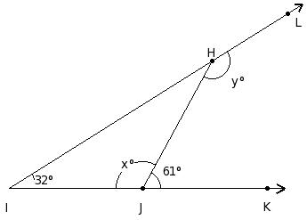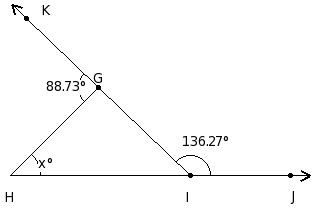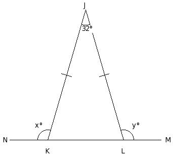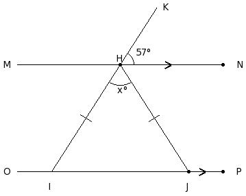 In the given figure, MN ∥ OP, ∠KHN = 57° and HI = JH. Find the measure of x.