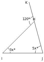 In the following figure, one side of a triangle has been produced. Find all the angles of the triangle