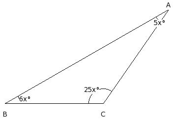 The angles of a triangle ABC are in the ratio 10 : 12 : 23. Find the measure of each angle of the triangle
