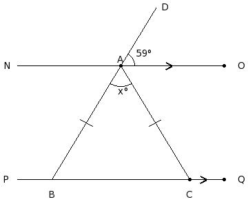 In the given figure, NO ∥ PQ, ∠DAO = 59° and AB = CA. Find the measure of x.