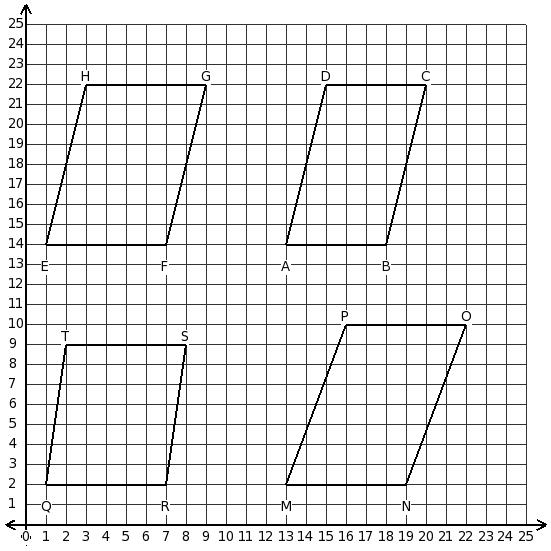 Consider the following parallelograms. Which two parallelograms have the same area?