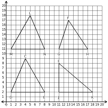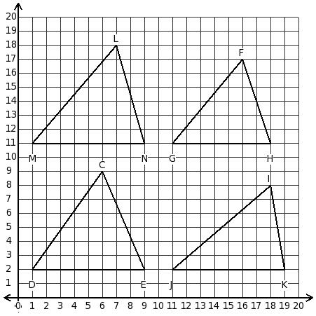 Consider the following triangles. Which two triangles have the same area?