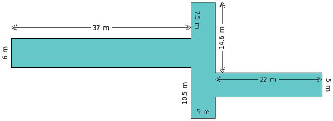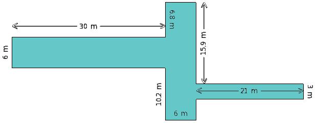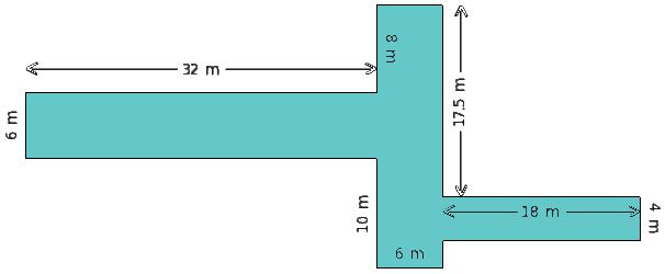 The width of the longer and the shorter paths are 8 m and 10 m respectively.