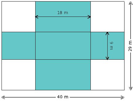 A rectangular field is 40 m by 29 m. It has two paths through its centre, running parallel to its sides.