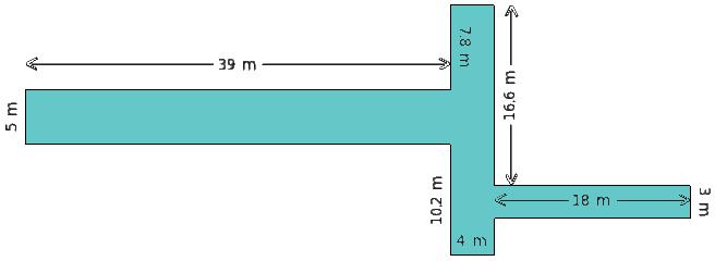 The width of the longer and the shorter paths are 9 m and 18 m respectively.