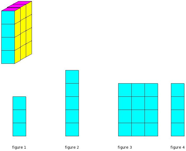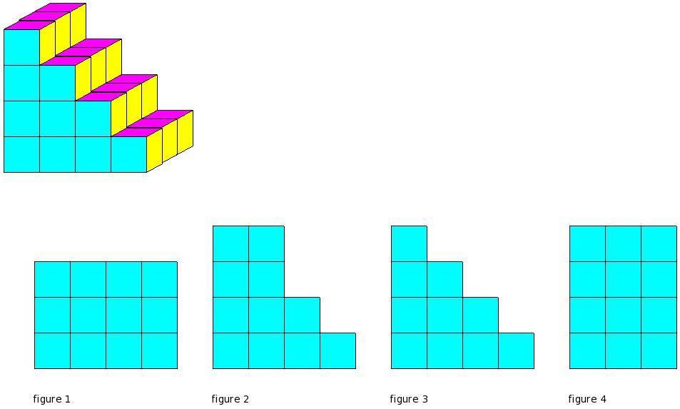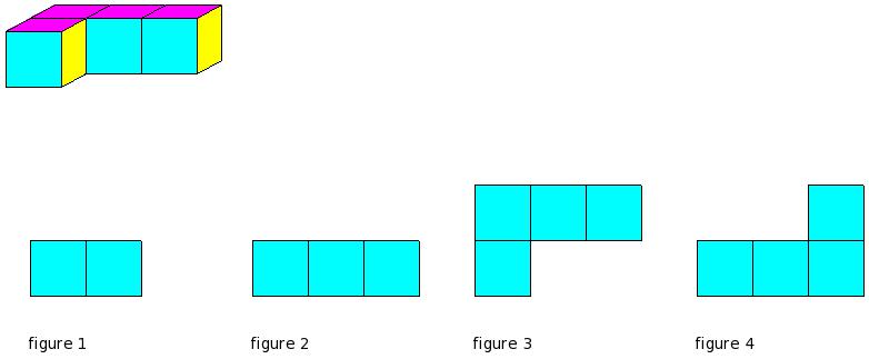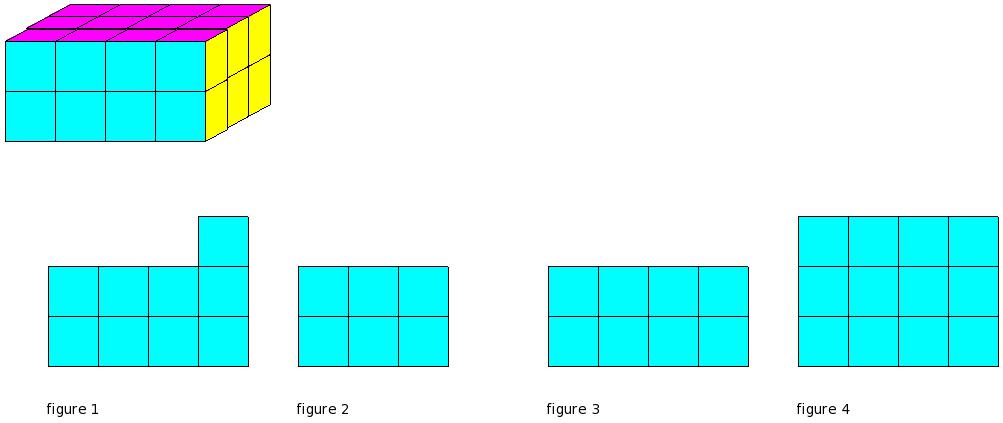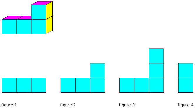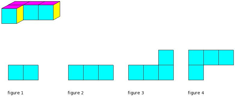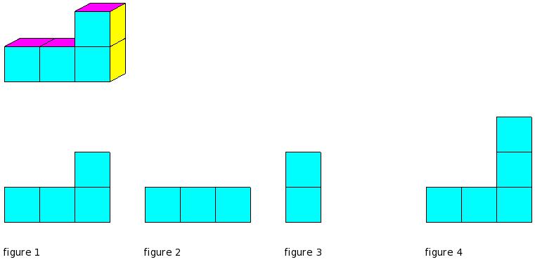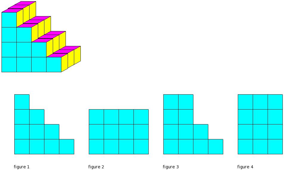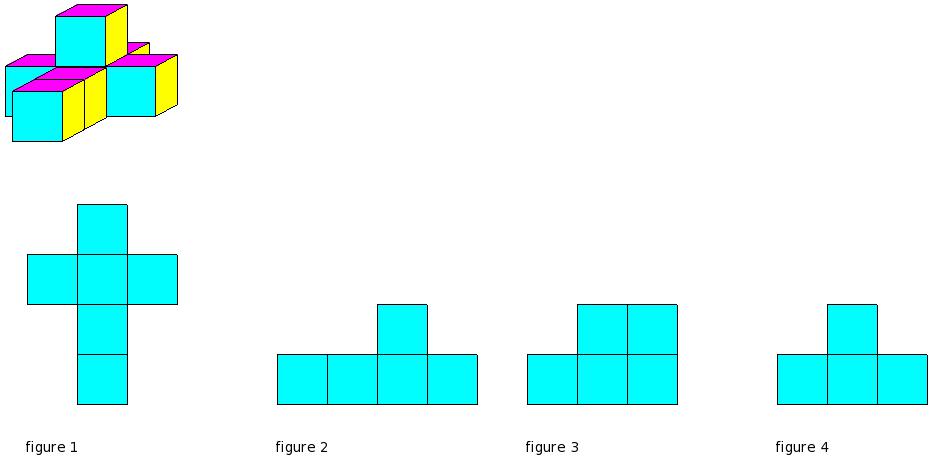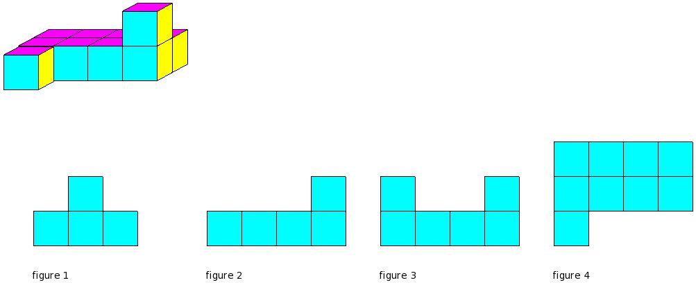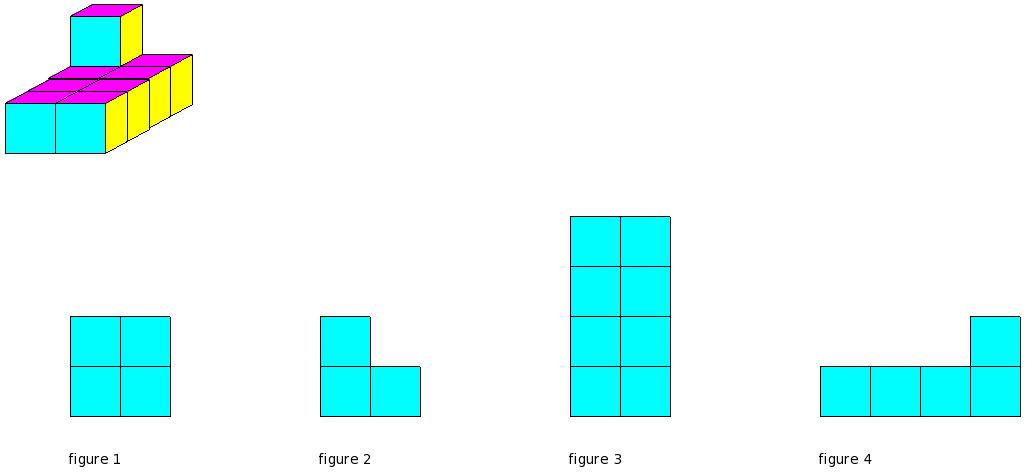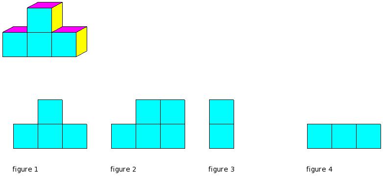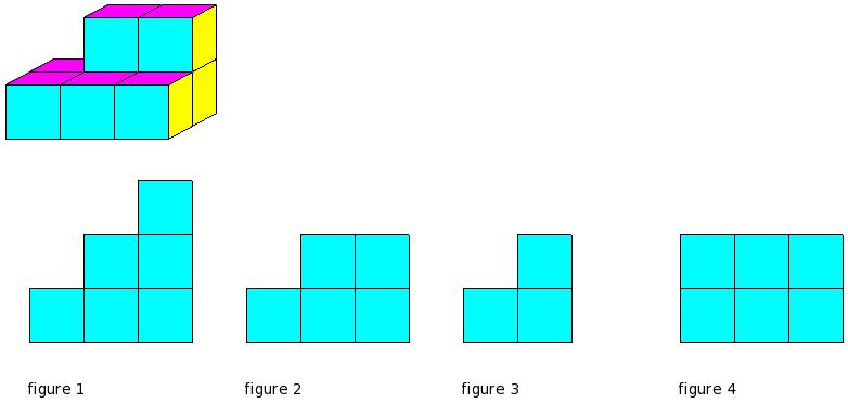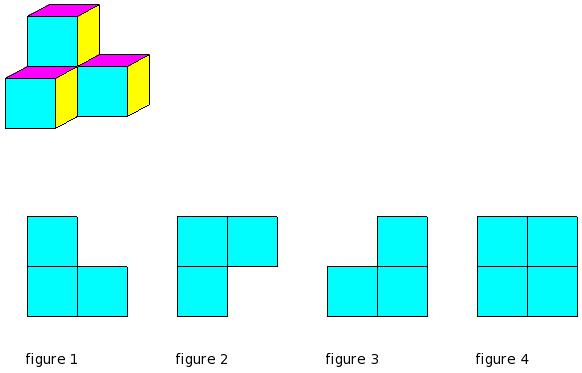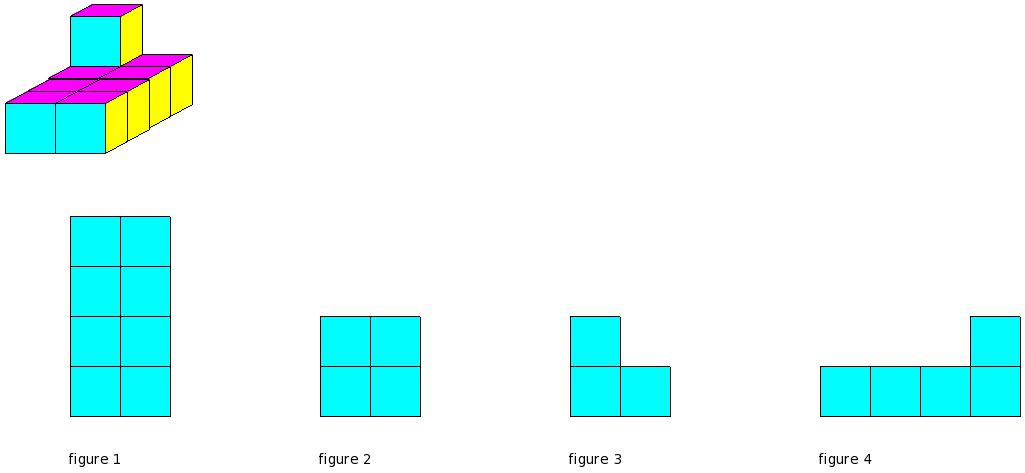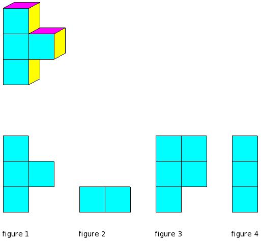 Which of the figures represent the front view of the given 3-D figure?