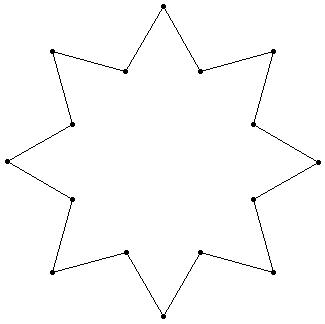 If the length between any two consecutive points is 4.3 cm, find the perimeter of the following figure