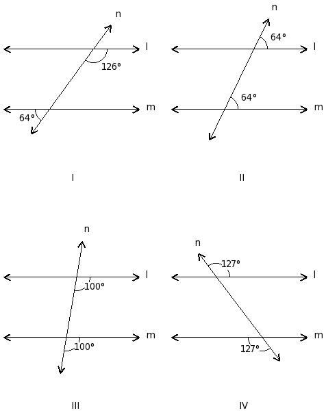 In which of the figures given bellow, l ∦ m(not parallel)?