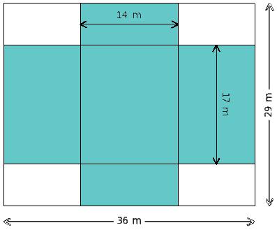 A rectangular field is 36 m by 29 m. It has two paths through its centre, running parallel to its sides.