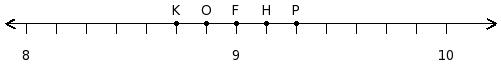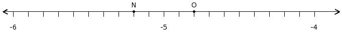 Find the sum of the rational numbers at the points labelled with letters N and O