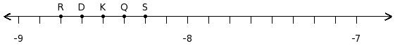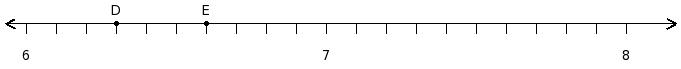 Find the difference of the rational numbers at the points labelled with letters E and F