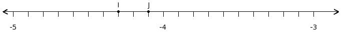 Find the sum of the rational numbers at the points labelled with letters I and J