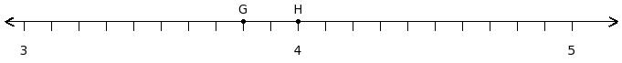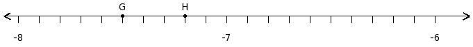 Find the sum of the rational numbers at the points labelled with letters G and H