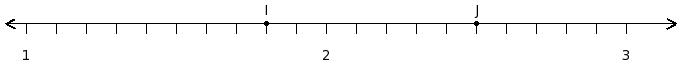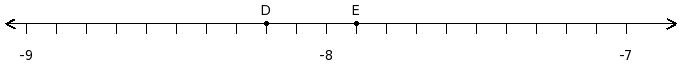 Find the difference of the rational numbers at the points labelled with letters D and E