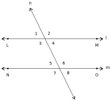 ∠1 , ∠5 ; ∠2 , ∠6 ; ∠3 , ∠7 ; ∠4 , ∠8