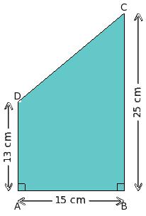 Find the area of shaded region in the adjoining figure, given that AB = 15 cm, BC = 25 cm, AD = 13 cm and ∠DAB = ∠ABC = 90°.