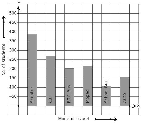 Students of a certain locality use different modes of travel to school as given below. Find the mode of travel that has minimum students.