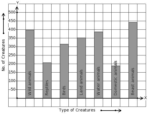 There are 2286 creatures in a zoo as shown in the bar graph. Identify the table for the given bar diagram.