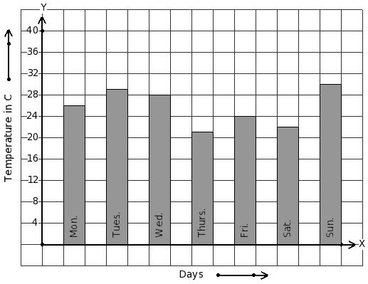 Following bar graph gives the average temperature of a place during a week. Find the day that has 21 °C temperature.