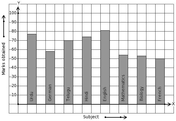 The marks obtained by Sushant in his annual exam are shown below. Find the subject that has maximum score.