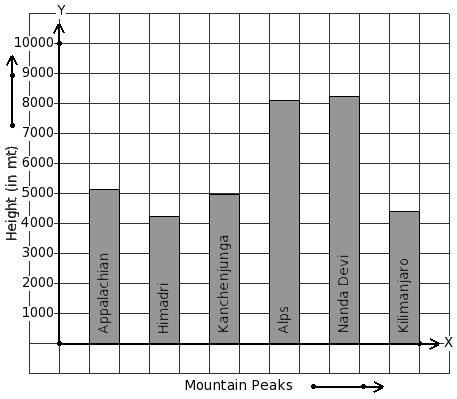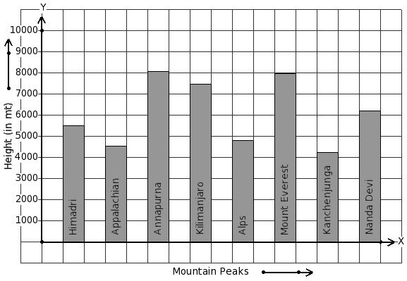 Given below is the column-graph showing heights of some mountain peaks. Find the mountain that has 4414 m height.