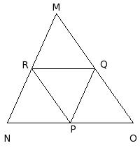 In the given figure, the area of the △MNO is x sq.cm. P,Q,R are the mid-points of the sides NO , OM and MN respectively. The area of the △PQR is