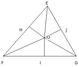 In the given figure, EFG is a triangle and 'O' is a point inside △EFG. The angular bisector of ∠FOE, ∠GOF & ∠EOG meet EF, FG & GE at H, I & J respectively . Then
