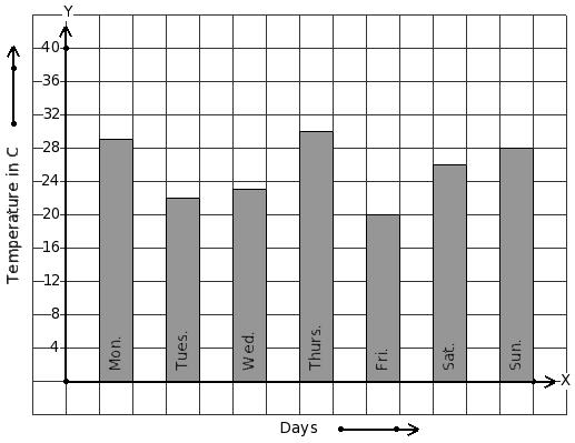 Following bar graph gives the average temperature of a place during a week. Find the day that has maximum temperature.