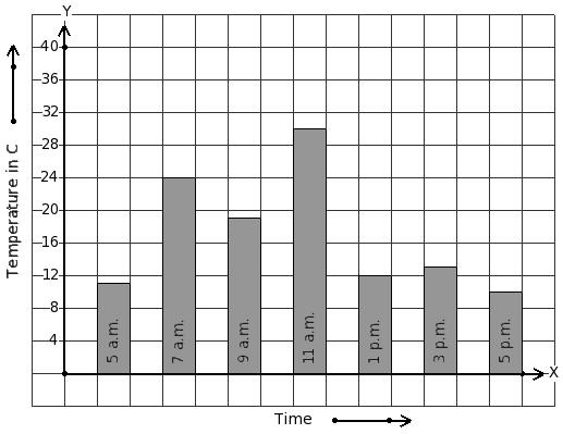 On a certain day, the temperature in a city was recorded as shown below. Find the time that has 13 °C temperature.