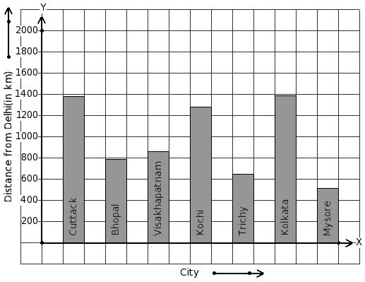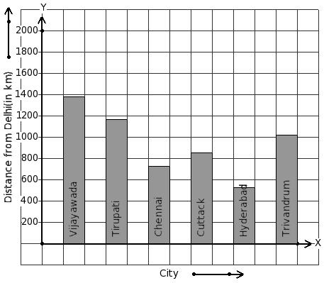 The air distance of some cities from Delhi (in km) are given below. Find the city that has 516 km distance.