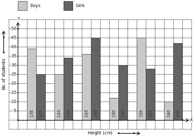 The heights of boys and girls of tenth class of a school are given below. Identify the table for the given bar diagram.