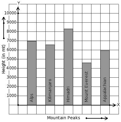 Given below is the column-graph showing heights of some mountain peaks. Find the mountain that has 8305 m height.