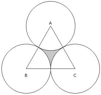 In the given figure △ABC is an equilateral triangle whose area is 110.85 sq.cm. With each vertex of the triangle as center, a circle is drawn with radius equal to half the length of the side of the triangle . Find the area of the shaded region