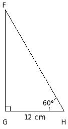 In the given figure, △FGH is right angled at G. If GH = 12 cm and ∠H = 60°, find FG and FH
