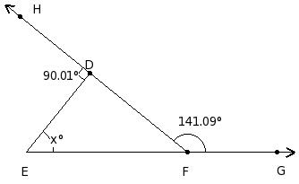 In a right angled triangle, if one of the angles is 40.6°, find the third angle