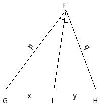 In the given figure, given ∠IFG = ∠HFI, x : y = 9.73 cm : 8.27 cm and p = 20 cm, find q =