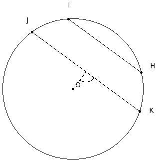 In the given figure, HI ∥ JK. Length of chords HI = 18 cm and JK = 27 cm.