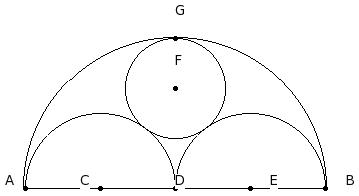 AB is a line segment and D is its mid-point. Three semi-circles are drawn with AD , DB and AB as diameters. C , E and D respectively are the centres of these semi-circles. A new circle is drawn touching these three semi-circles. Find its radius, given AC = 8 cm