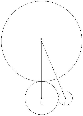 'J' and 'K' are centres of circles of radii 3 cm and 17 cm such that JK = 26 cm and 'L' is the centre of the circle of radius 'r' cm which touches the above circles externally. If ∠JLK = 90°, find 'r'