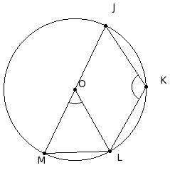 O is the centre of the circle. If ∠JKL = 117.5°, find ∠LOM