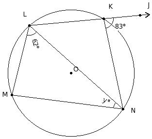 In the given figure, O is the centre of the circle. If ∠NLM = 62° and ∠JKN = 83°, find ∠LNM