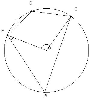In the given figure, O is the centre of the circle. If ∠BCO = 16° and ∠OEB = 36°, find ∠COE