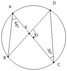 In the given figure, O is the centre of the circle. If ∠BAC = 46° and ∠ACD = 36°, find ∠CED