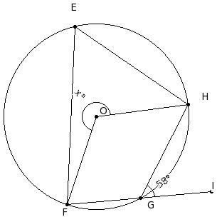 In the given figure, O is the centre of the circle. If ∠IGH = 58°, find reflex ∠HOF