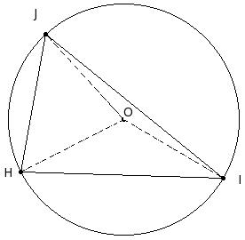 △HIJ is inscribed in a circle with centre O. If ∠HOI = 123° and ∠IOJ = 163°, find ∠IJH