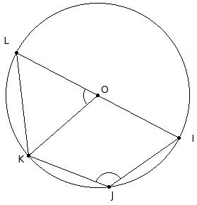O is the centre of the circle. If ∠IJK = 124°, find ∠KOL