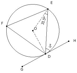 In the given figure, O is the centre of the circle and GH is the tangent at D. If ∠OED = 31.5°, find ∠HDE