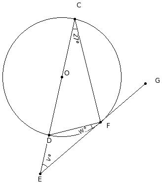 In the given figure, O is the centre of the circle and EG is the tangent at F. If ∠DCF = 27°, find ∠DEF + ∠DFE