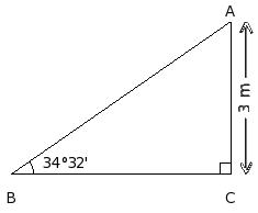 A pole stands vertically on the ground. From a point on the ground, the angle of elevation of the top of the pole is found to be 34°32'. If the height of the pole is 3 m, find the distance between the observation point and the top of the pole.