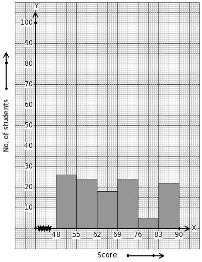 Scores of 119 students are given below. Identify the class mark table for the given histogram.